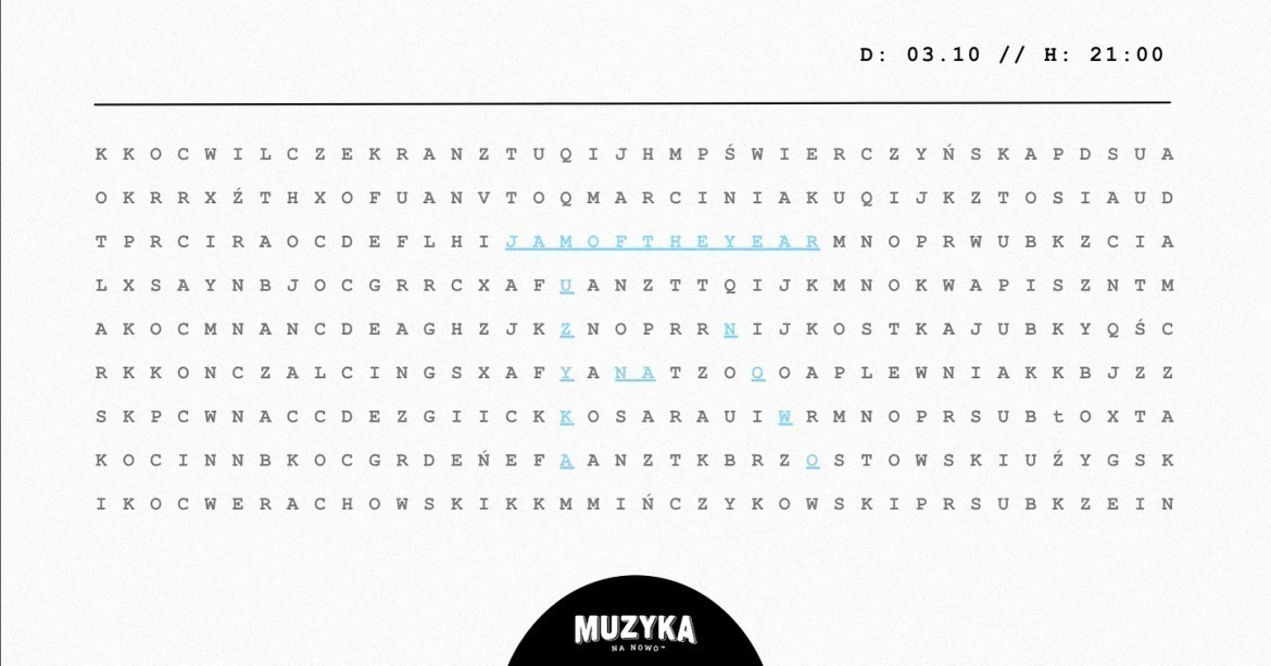 Jeden z pierwszych koncertów w klubie działającym od niedawna pod nową nazwą Muzyka na Nowo (wcześniej „Muchos”), pozwoli poznaniakom przeżyć coś nowego - zamknięta lista muzyków, zamknięta lista utworów, a o tym, kto z kim i co zagra, zdecyduje los. Tym razem bez jazzu, tylko piosenki - a wystąpi cała plejada artystów, takich jak m.in. Bartek Werachowski, Staszek Plewniak czy Maksymilian Mińczykowski.