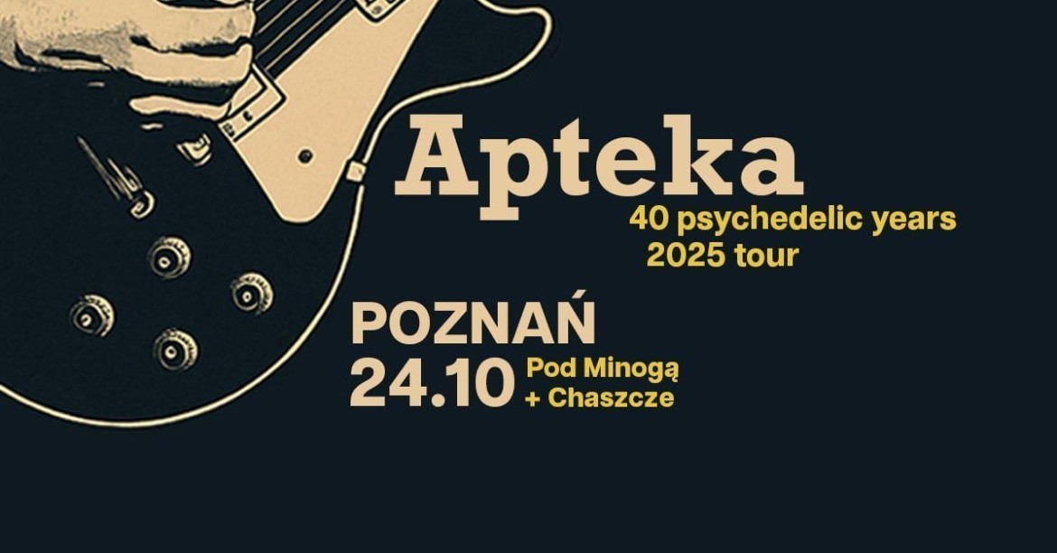 Zespół Apteka wraca do Poznania w ramach trasy “40 psychedelic years”, świętując cztery dekady swojej działalności na polskiej scenie alternatywnej. Gościem koncertu będzie zespół Chaszcze, prezentujący materiał z nowego albumu “negaTVsta”.