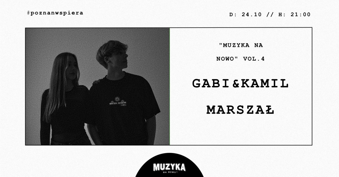 Gabi i Kamil Marszał wystąpią w ramach projektu „Muzyka na Nowo”. Duet znany z udziału w The Voice Kids zaprezentuje autorskie utwory, w tym najnowszy singiel „Dobrze to znasz”. Wydarzenie będzie częścią programu wspierającego lokalnych artystów i zespoły z poznańskiej sceny muzycznej.