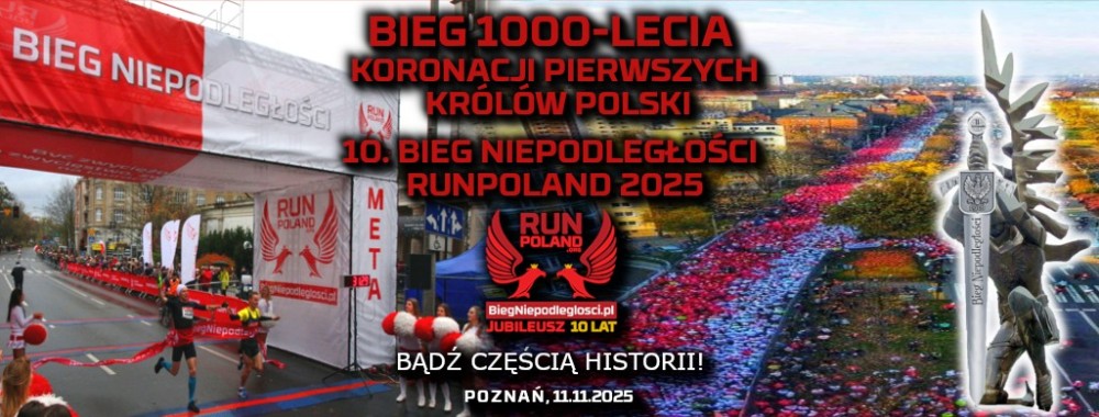 Jubileuszowy 10. Bieg Niepodległości RunPoland 2025 wystartuje 11 listopada o godz. 11.11. Bieg odbędzie się na jednej pętli o długości 10 km i trasa posiada atest PZLA. Start na ul. Grunwaldzkiej (tuż przed ul. Śniadeckich), następnie bieg do nawrotu, gdzie na wysokości ul. Cmentarnej przypada półmetek. Po nawrocie, powrót do centrum na ul. Grunwaldzką, gdzie znajduje się META. Więcej informacji, w tym szczegóły organizacyjne na stronie biegniepodleglosci.pl