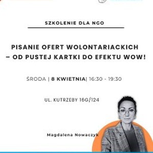 Szkolenie dla osób koordynujących wolontariat w organizacjach pozarządowych. Pisanie ofert wolontariackich - od pustej kartki do efektu wow!